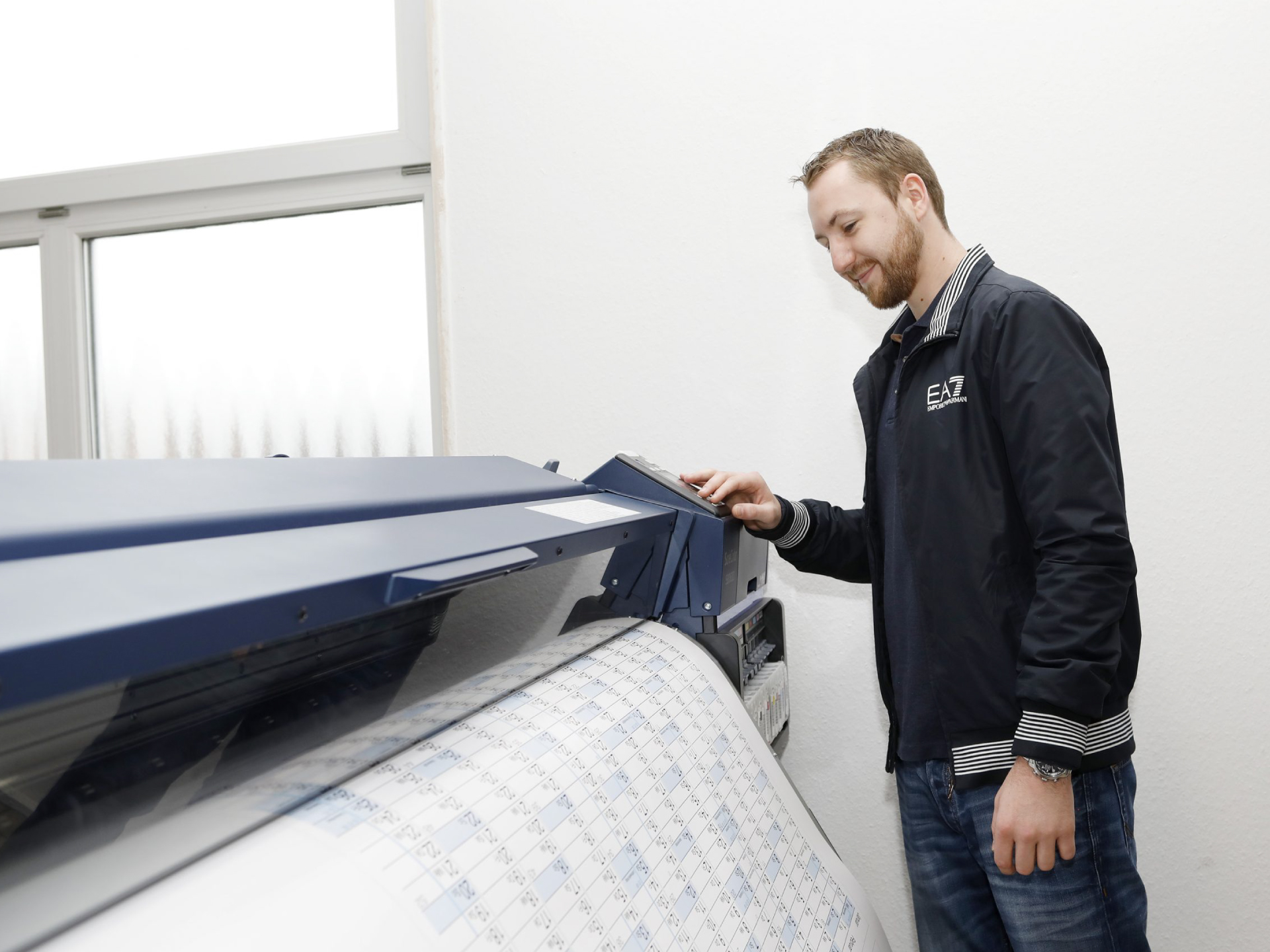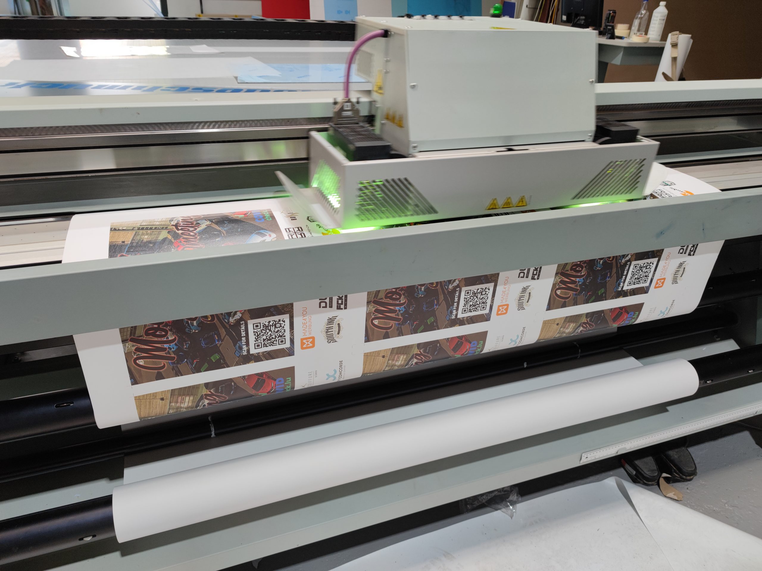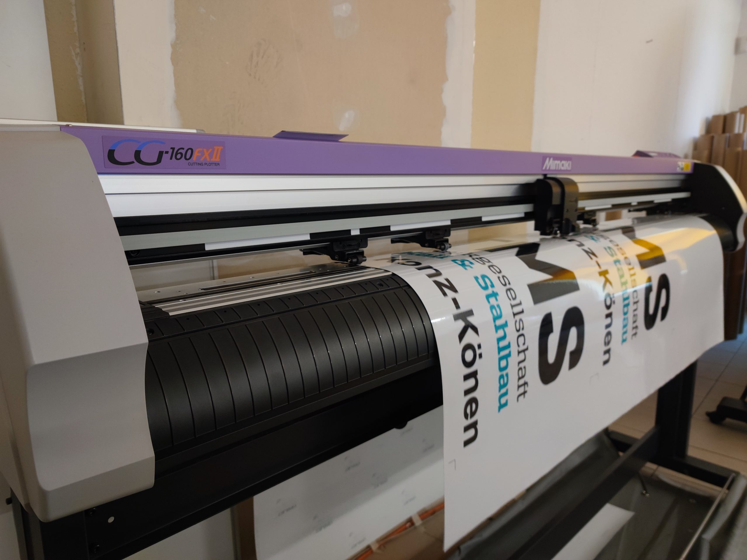 Druckplotter mit einer Druckbreite von jeweils 160cm. Ein Druckplotter mit einem 10-Farbdruck System zum hochwertigstem Druck, inklusive Weißdruck und Metallic-Druck und ein Druckplotter mit 4-Farbdruck Sytem.
