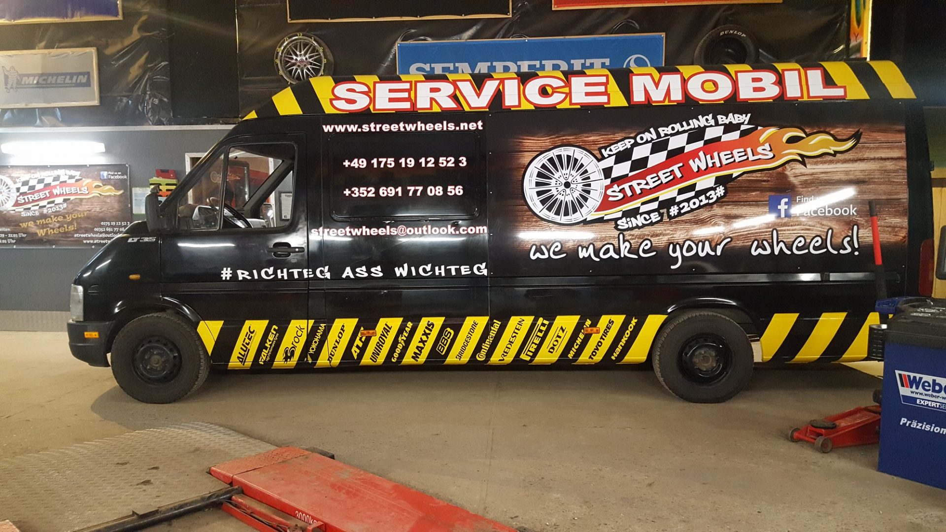 Streetwheels Lieferwagen erstrahlt in einem neuen Design. In diesem Fall wurde mit 3M Carwrapping Folie gearbeitet. An der Seite ist ebenso eine von uns bedruckte Dibond Platte zu sehen, welche dann von Street Wheels angenietet wurde.